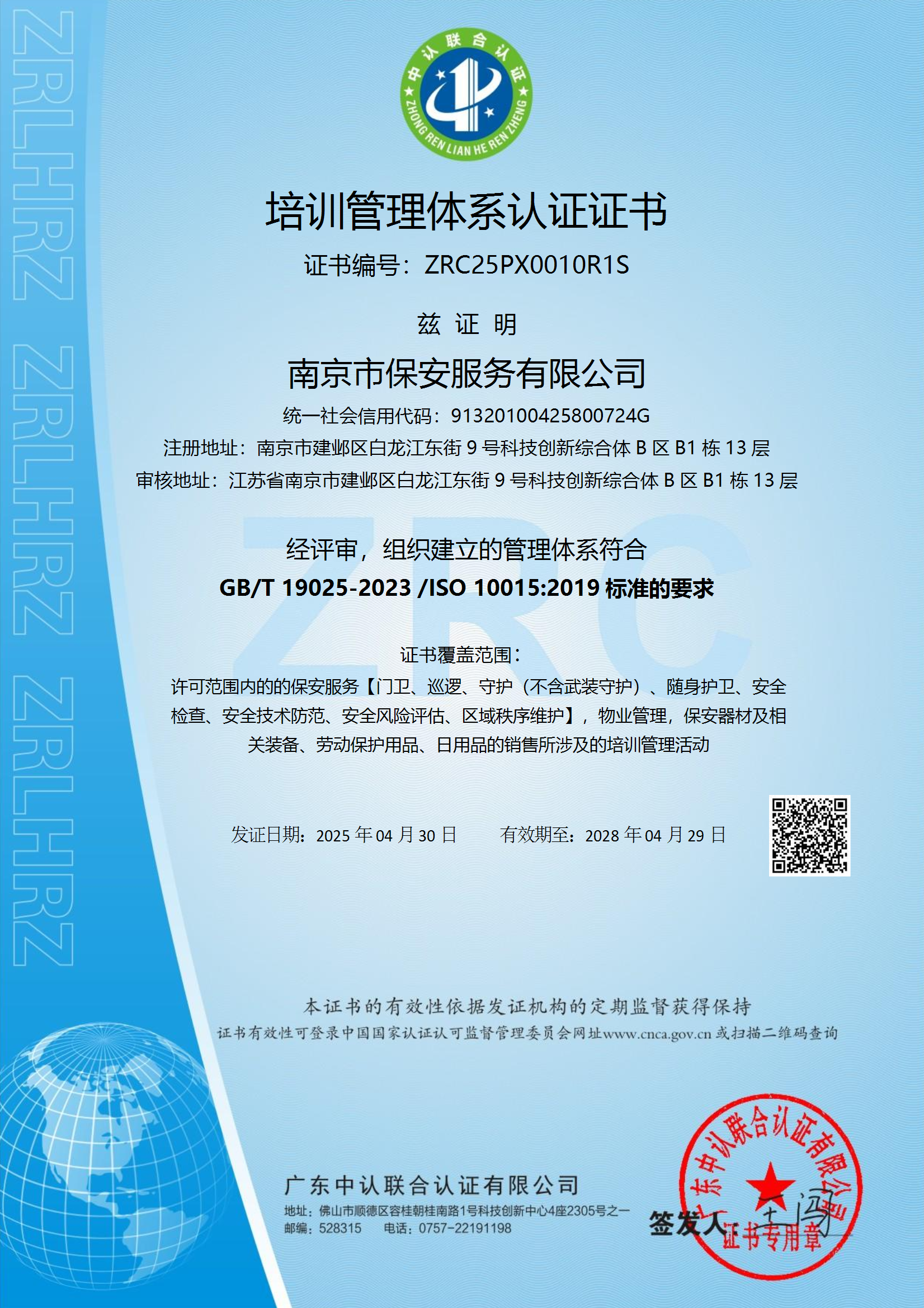 南京市保安服務有限公司(原南京市保安服務總公司)成立于1987年4月,是一個有著悠久安保經營歷史和安保經驗沉淀的大型國有保安企業(yè),現為中國保安協會常務理事單位,江蘇省保安協會常務理事單位,南京市保安協會副會長單位,江蘇省一級保安服務公司。